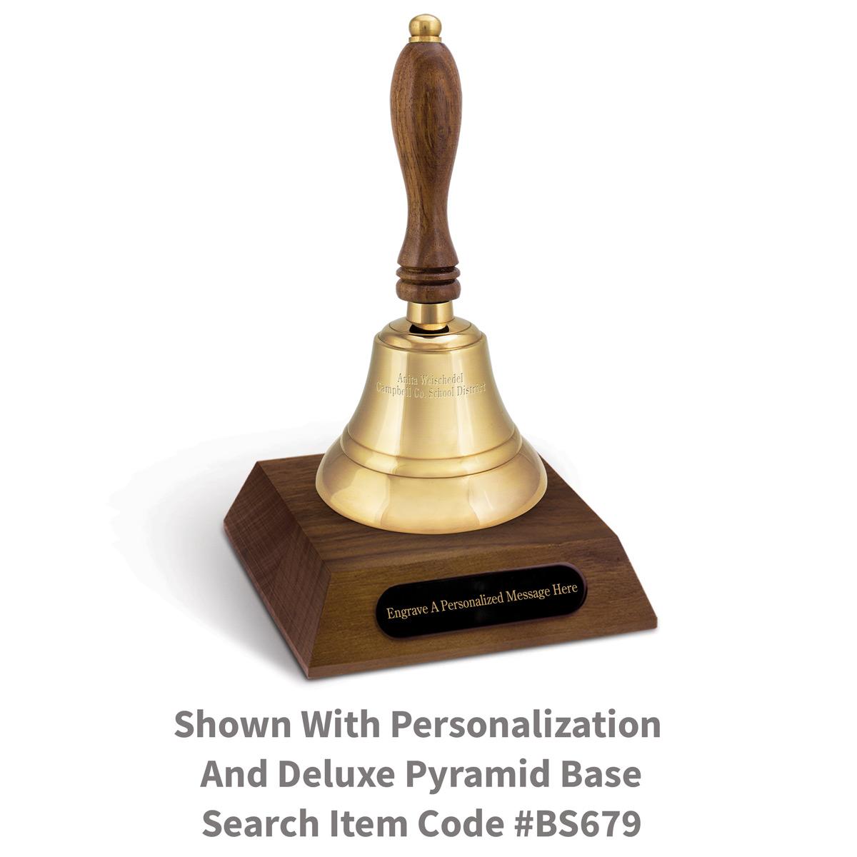 Weighing a pound and a half, this large schoolhouse bell is an impressive way to honor and recognize all those in education. Handcrafted of solid brass with a wood handle. Make it special by adding your logo and/or personalized message.
