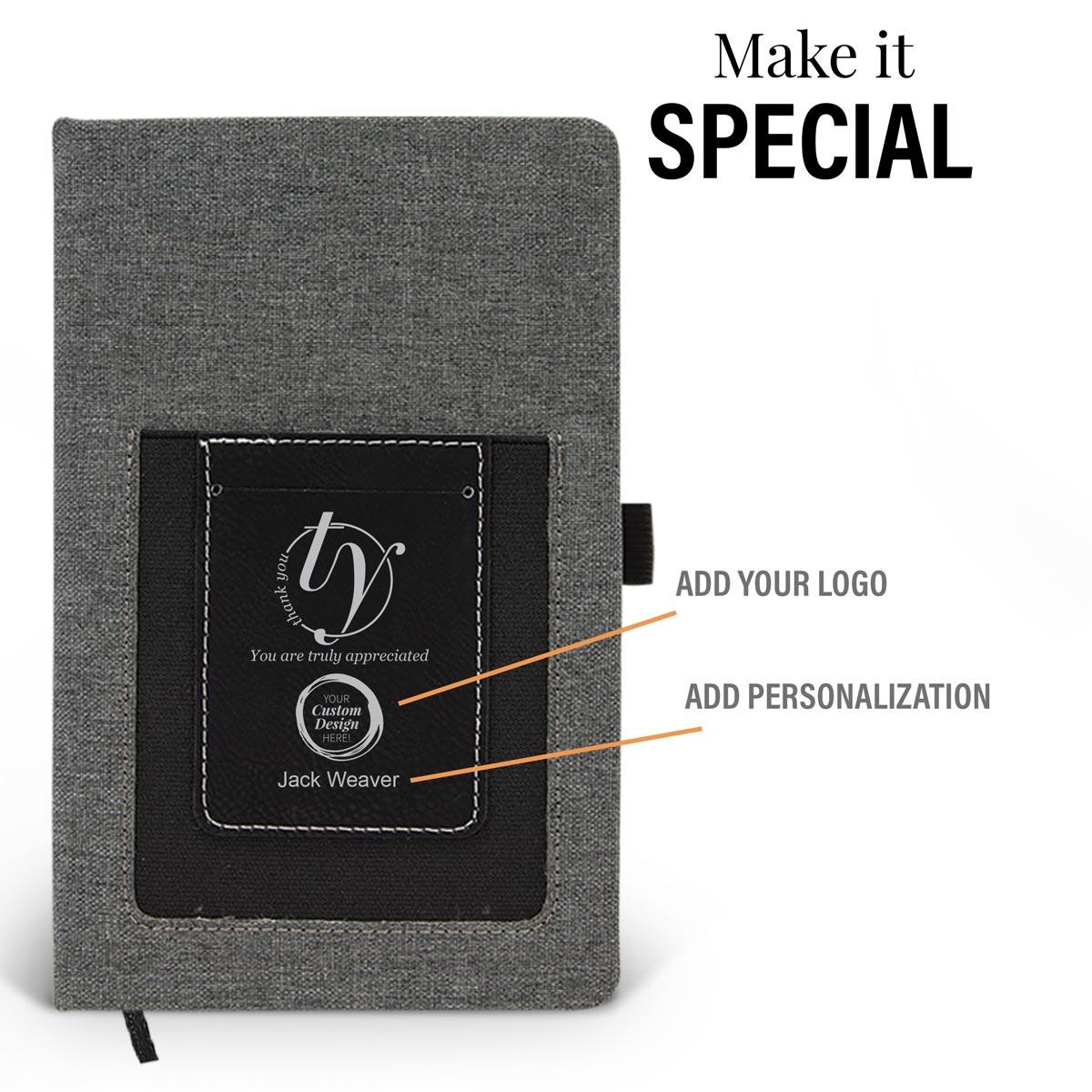 Smartly designed for today’s educators, this functional journal features a phone pouch and a school ID card holder! Our exclusive, inspirational message "You are truly appreciated. Thank You" is laser engraved directly into the richly textured journal. Make it special by adding your logo and/or personalization to any of our pre-designed messages.